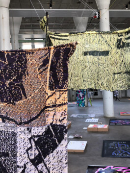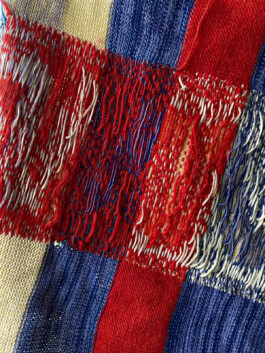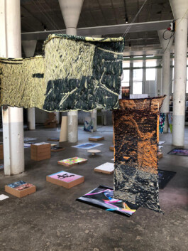 The ongoing journey of traveling back and forth plays a important role in my lifestyle. By deconstructing several routes, new fragments are created that lead to other sequences and patterns that resulted in knitted landscapes. At the same time the colours play an important role which are indicating the timezone and movement of this daily routine. Through the several textures such as the rough jute reveals a strong connection I have with this way of continuous shifting. As well as the front and back are even important – the backside shows the more intimate and fragile side. This project was exhibited during the KABK group exhibition at Het Hem in Zaandam.