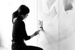 The decision of making a mural comes from the challenge of being in the present moment. Being constantly on the move makes it very complicated to focus on the actual task you’re doing. Finding the contrasts between the structured way of moving and the spontaneous yet intuitive way of applying the strokes was the main component that connected everything together. The vertical strokes that surrounds the leading strokes represents this repetitive and systematic approach in which we’re trying to break out from in our daily life. The method of removing and repainting it is also connected to the process of going back and forth with traveling. This mural is created in the public space of TAC in Eindhoven.